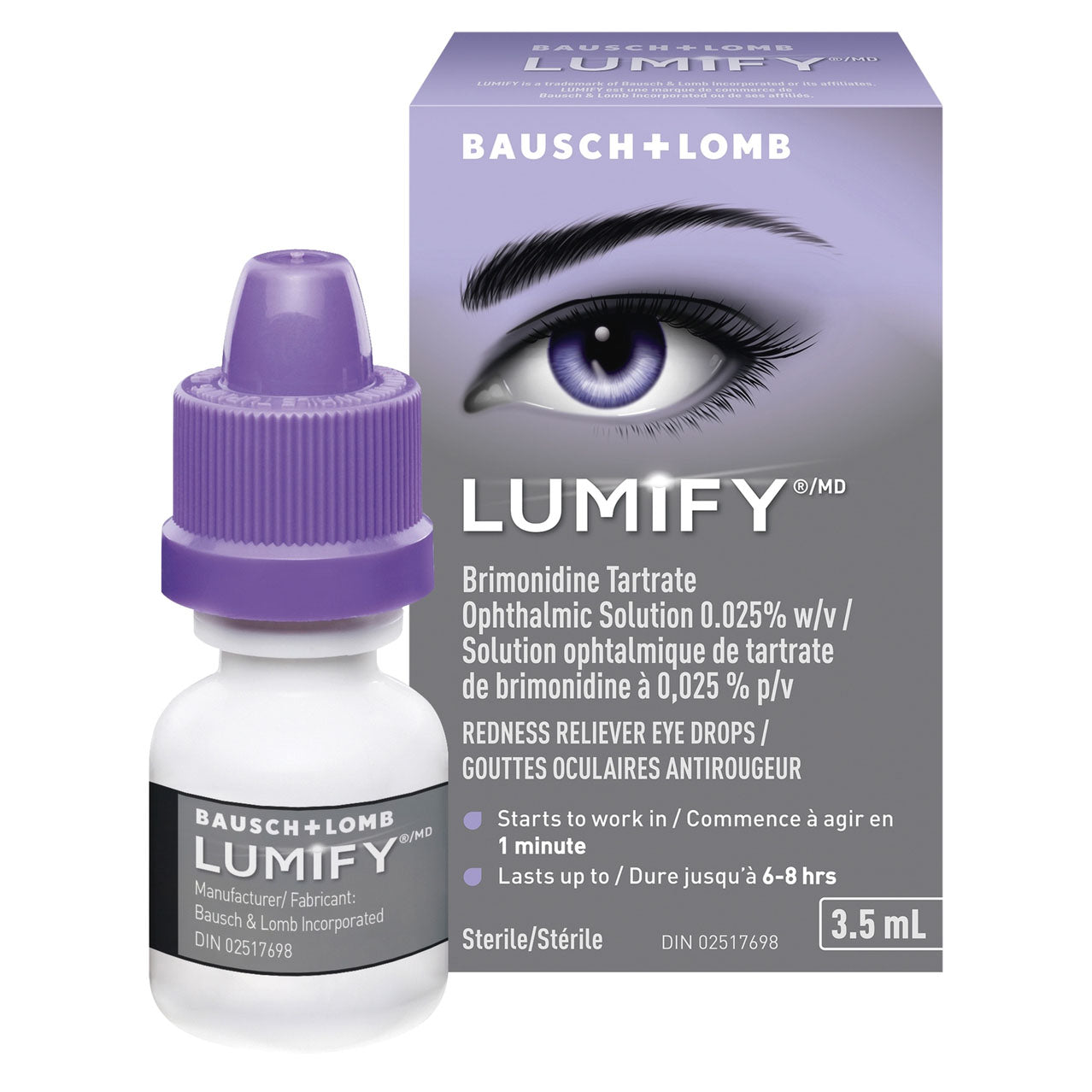 Health Canada Approved Health Canada has approved Bausch + Lomb's LUMIFY® (brimonidine tartrate ophthalmic solution 0.025%) as the first and only over-the-counter eye drop developed with to relieve eye redness in Canada!