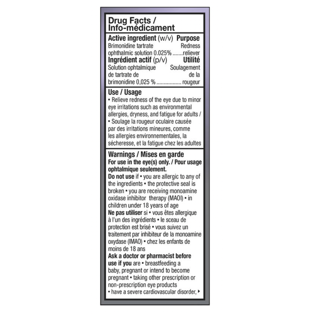 Active ingredient Brimonidine tartrate (0.025%) … redness reliever.